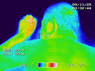 ホットパット接触により、身体の体温が約2℃上昇し、身体全体の温度が37℃に整いました。 |